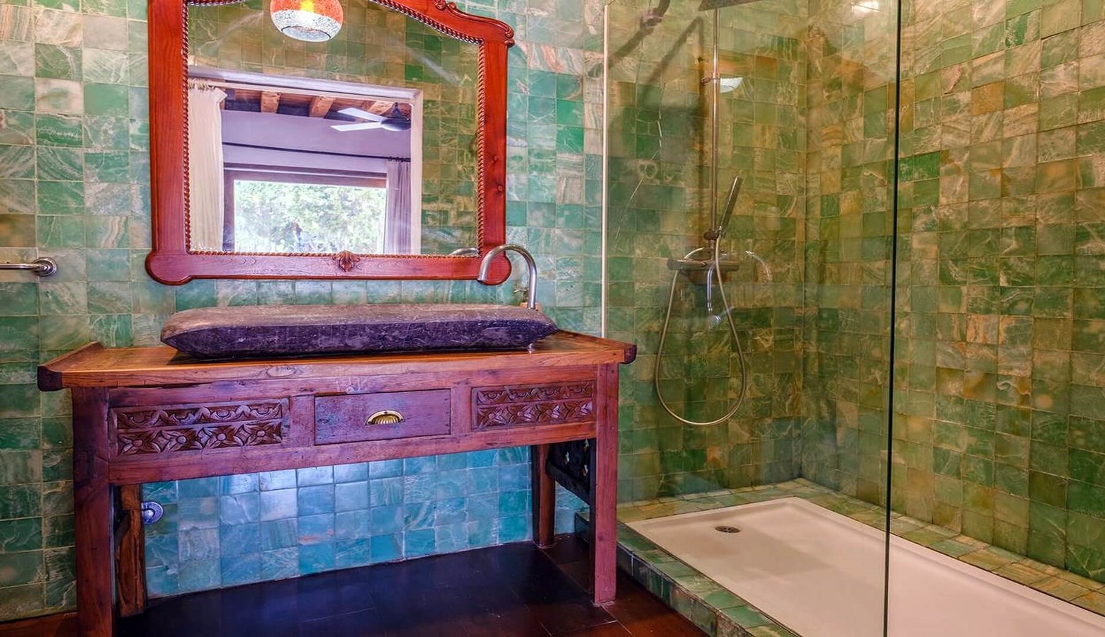 2 bedrooms with twin beds, air conditioning and en suite bathroom with access to the outside