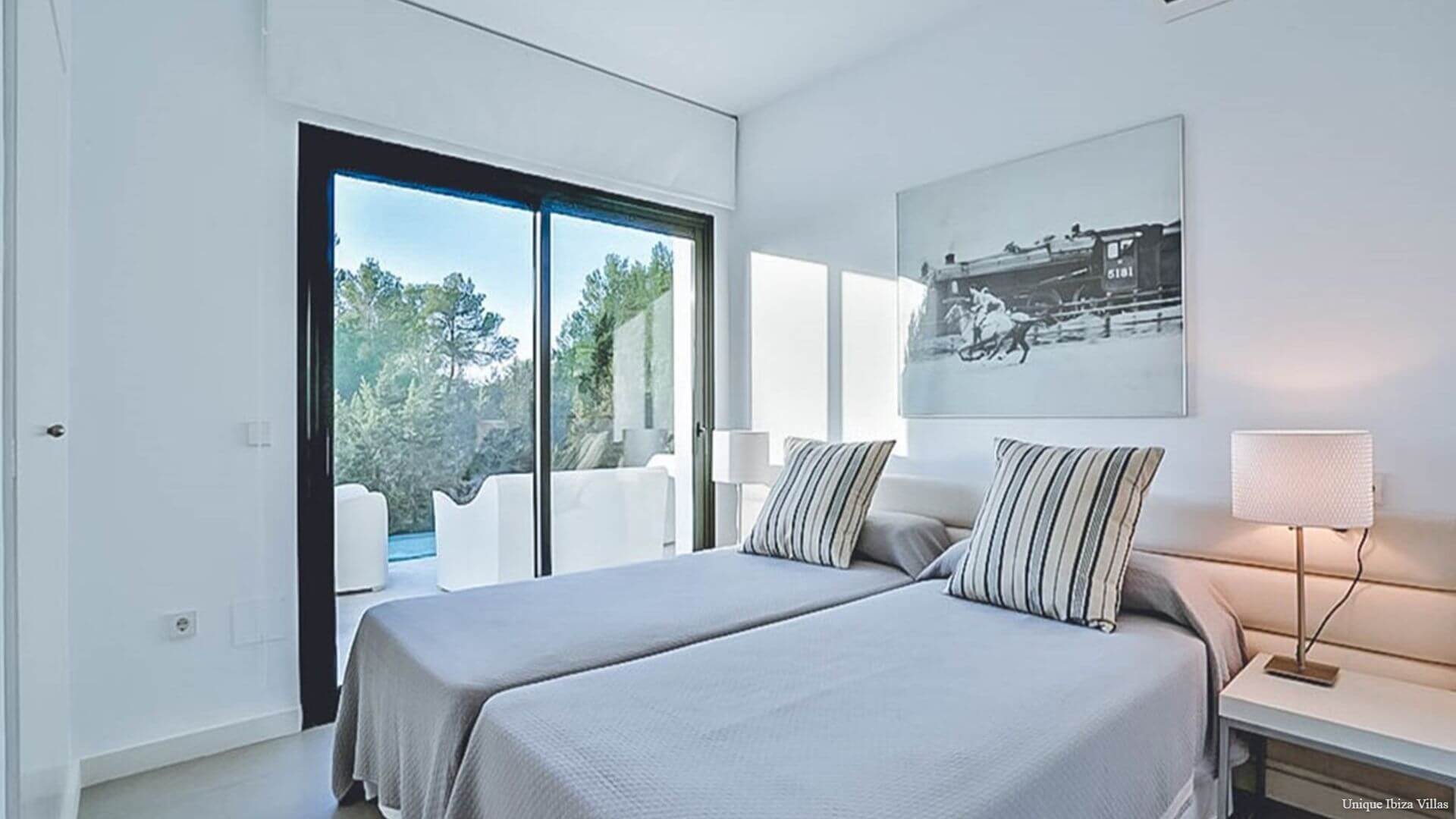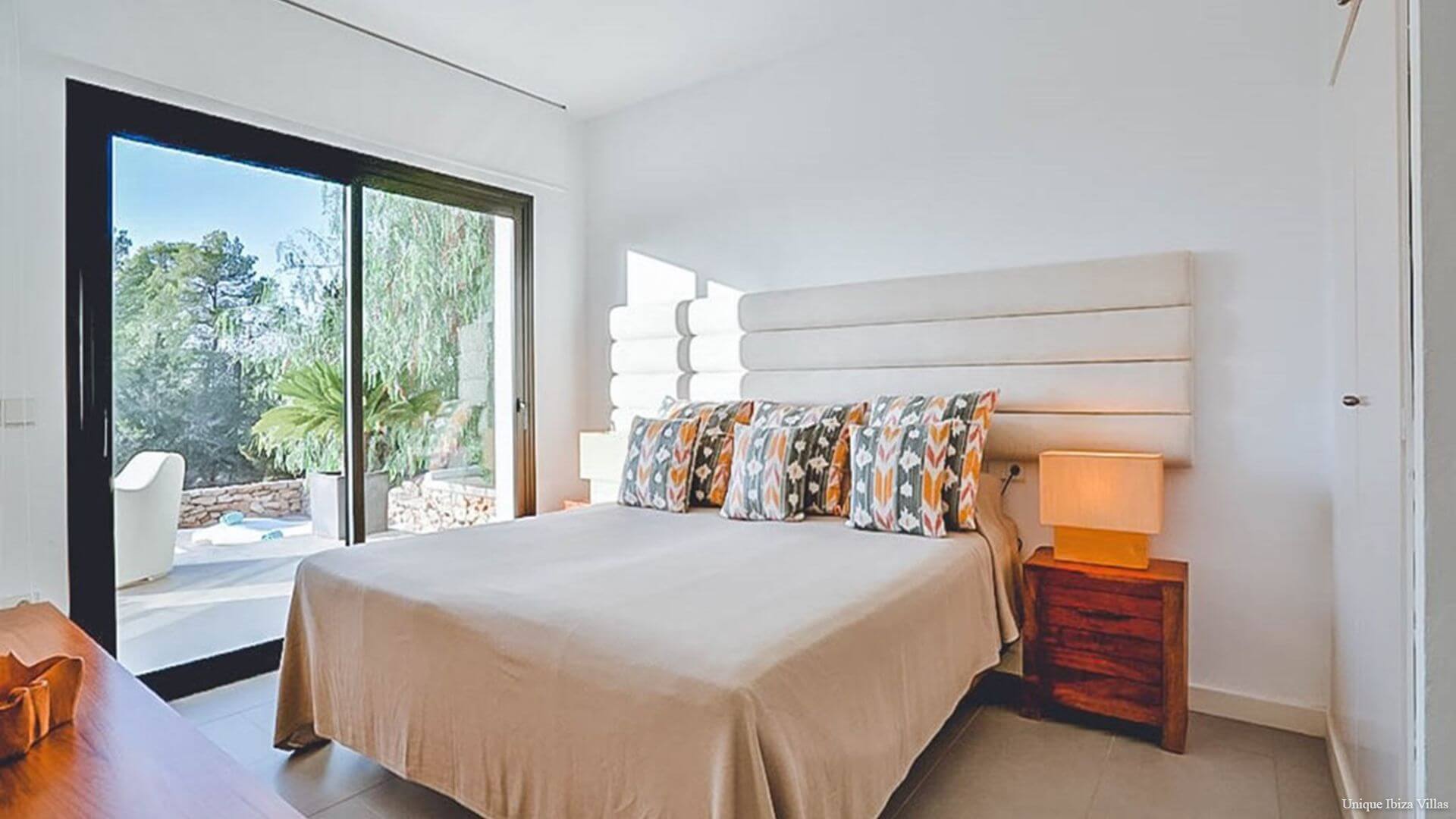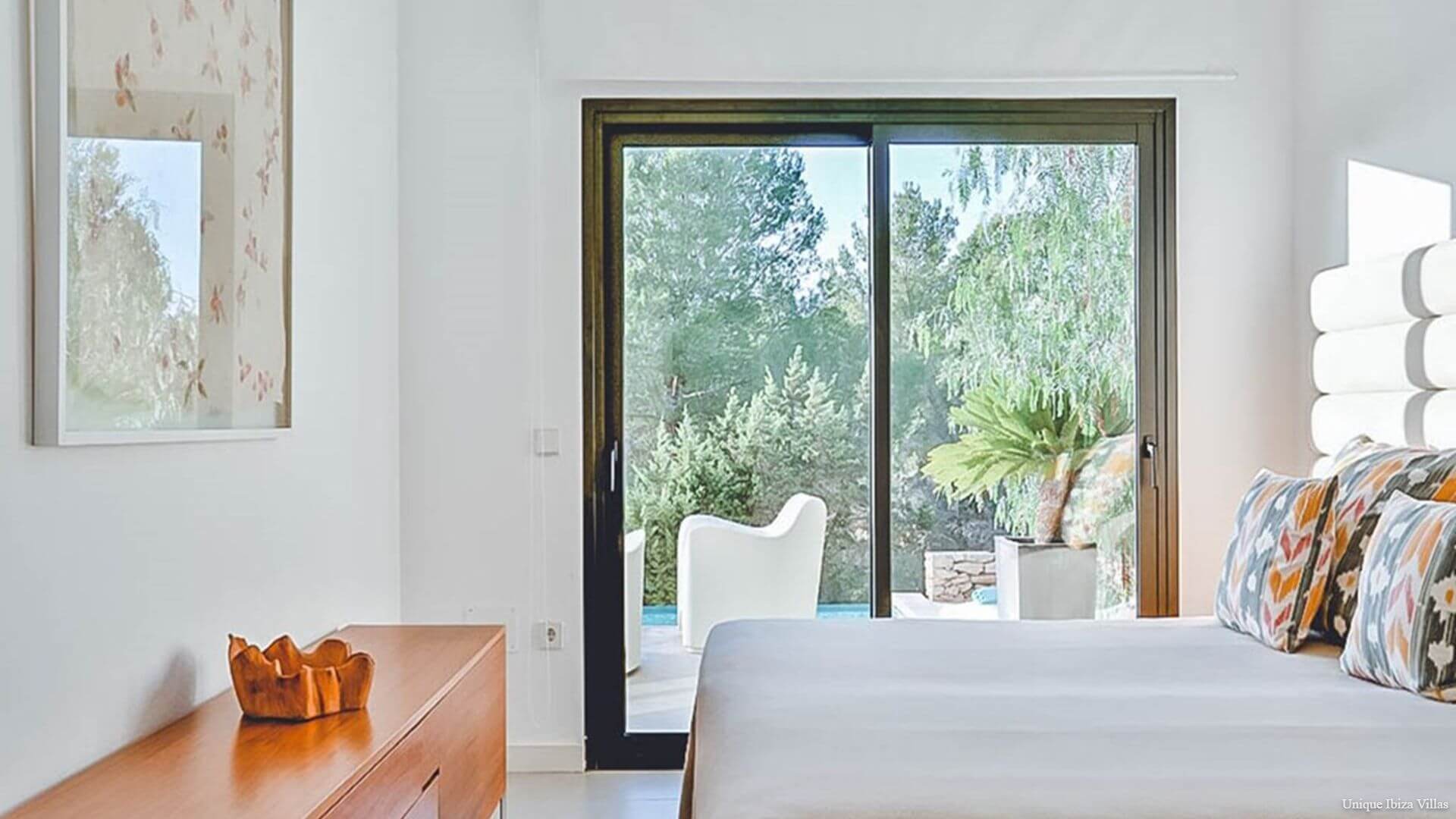 Villa Lua is a modern villa on the west of Ibiza close to Cala Tarida beach with sea & sunset views and set amongst the pine trees. The villa has 4 bedrooms, all with en suite bathroom, air conditioning and direct access to terraces.