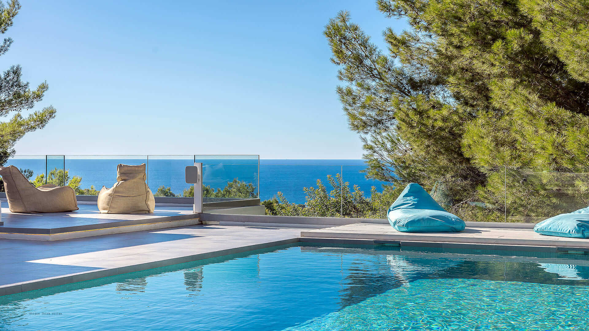 Villa Ivy is a 6-bedroom modern boutique villa located on the west coast close to Cala Tarida; ideal for sumptuous sea views by day and stunning sunsets at sundown