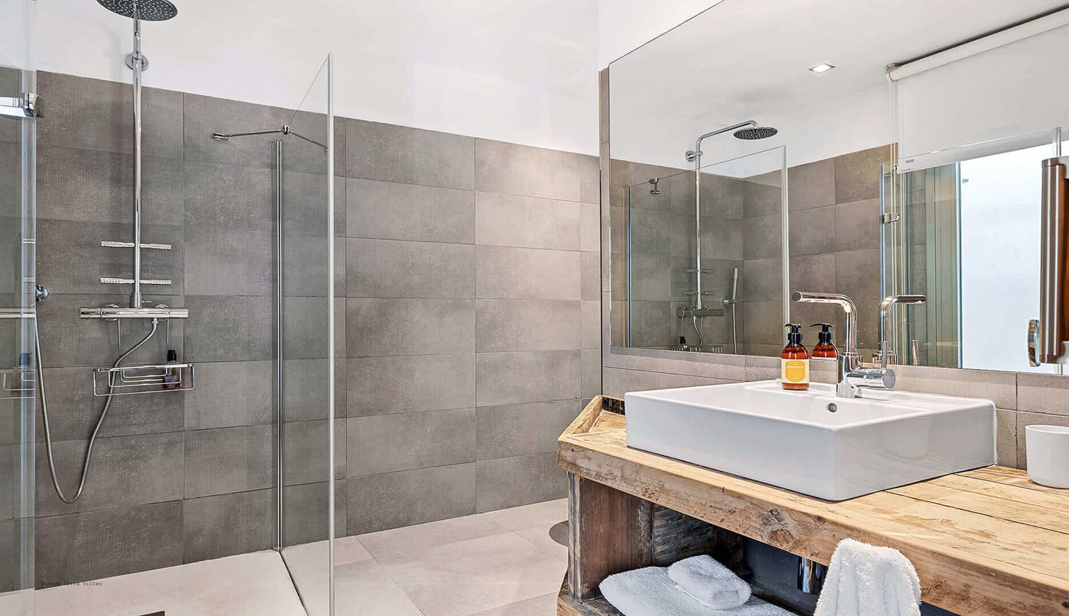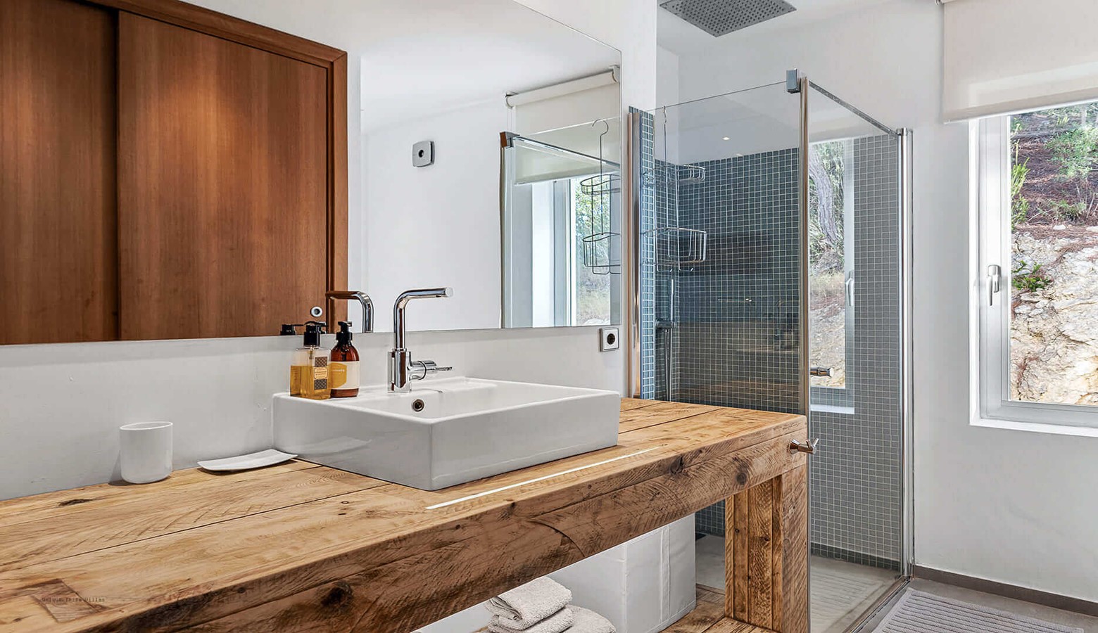 On the ground floor of the main house are 2 further bedrooms, again both with double bed, air conditioning and en suite bathroom