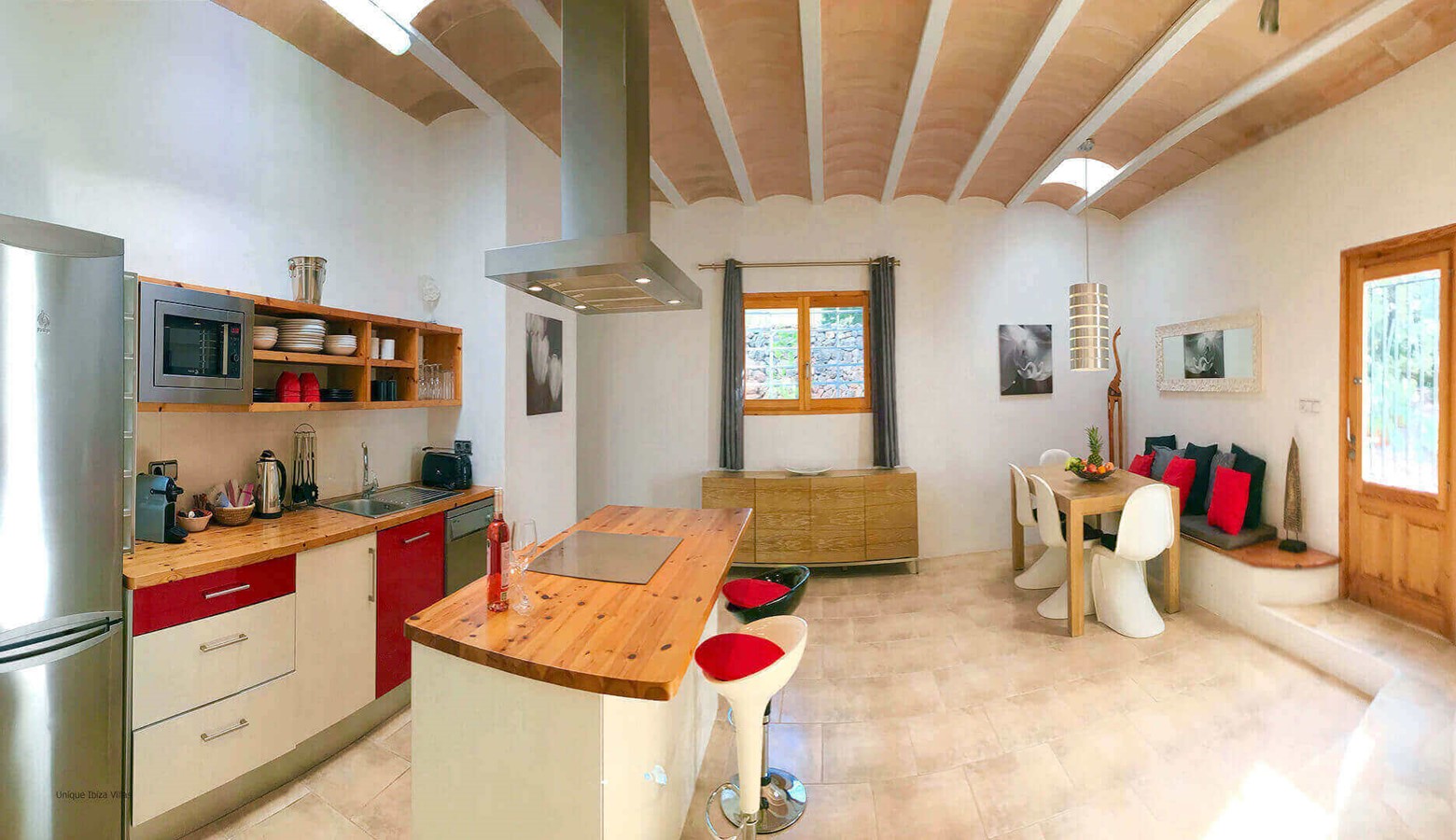 The villa is located in a quiet area just over 3 kilometres from the small family friendly resort of Cala Vadella and just over 5 kilometres to Sant Josep (San Jose) village.