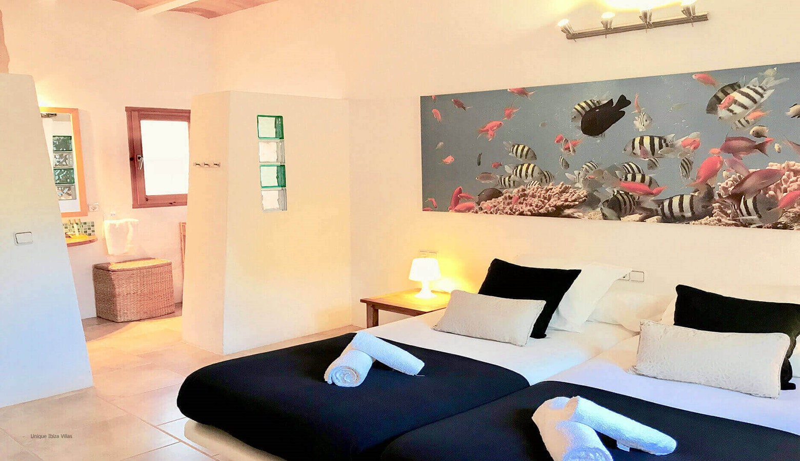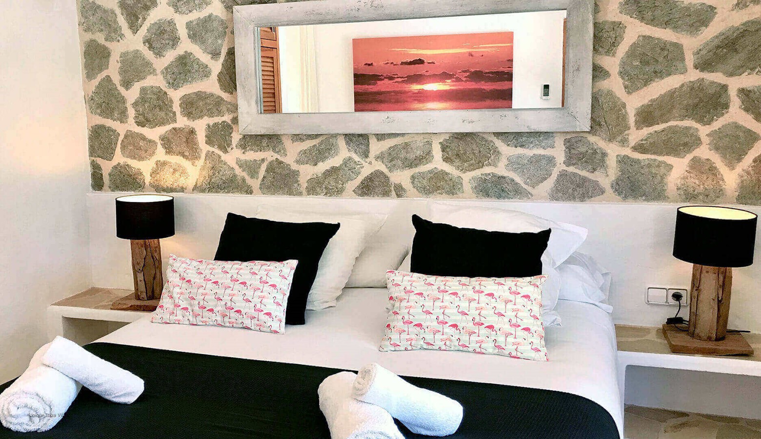 The closest village San Jose (Sant Josep de sa Talaia) is 5 kilometres away with a decent supermarket and good choice of restaurants, as well as being the gateway village to reach other west coast beaches and getting to Ibiza Town (21 kilometres) and beaches in the south