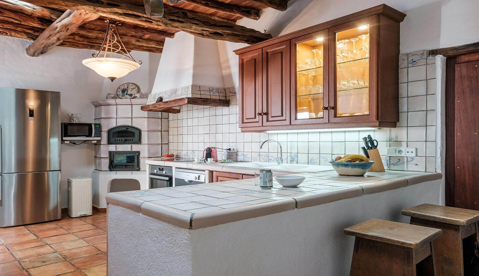 Fully equipped traditional kitchen with Sabina wood ceiling