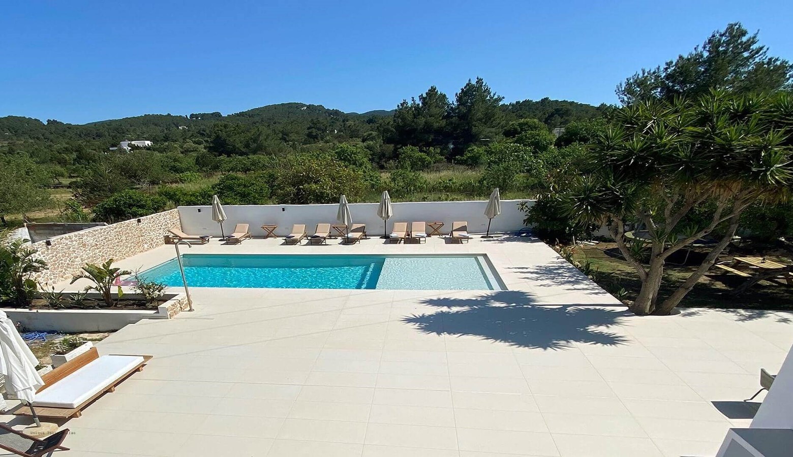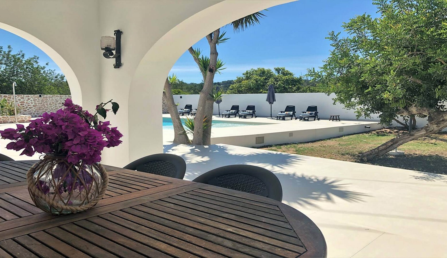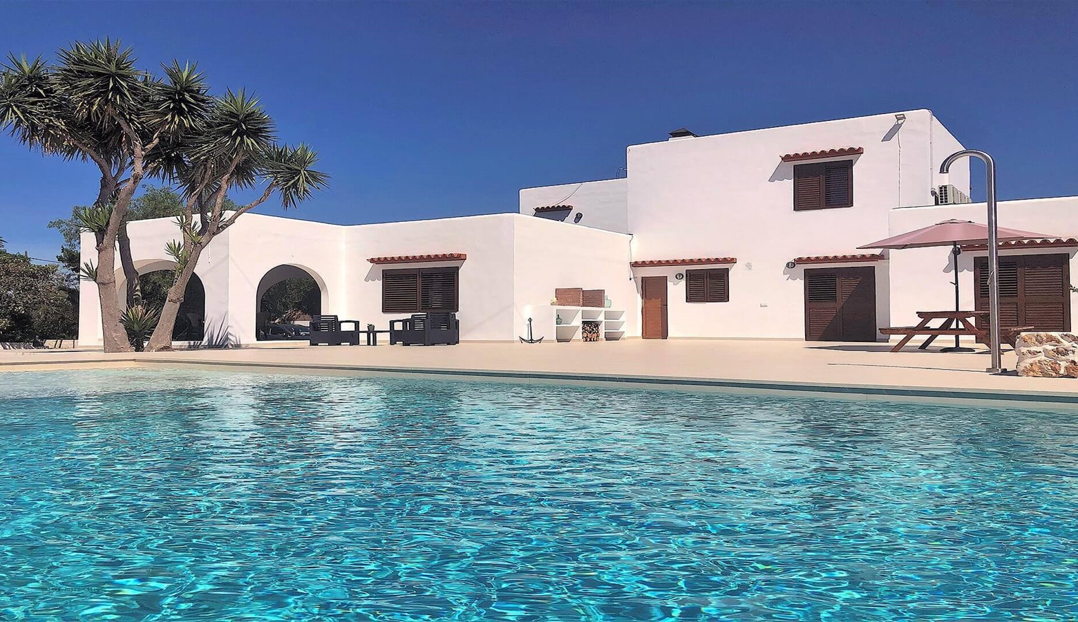 The refurbished outside area including the swimming pool is very appealing; inside the villa is quite simple but it's a great location for exploring San Antonio