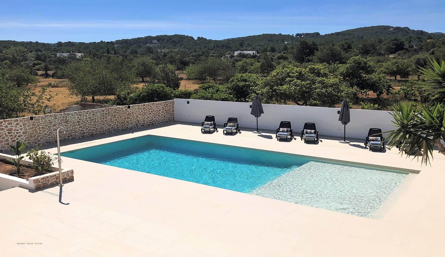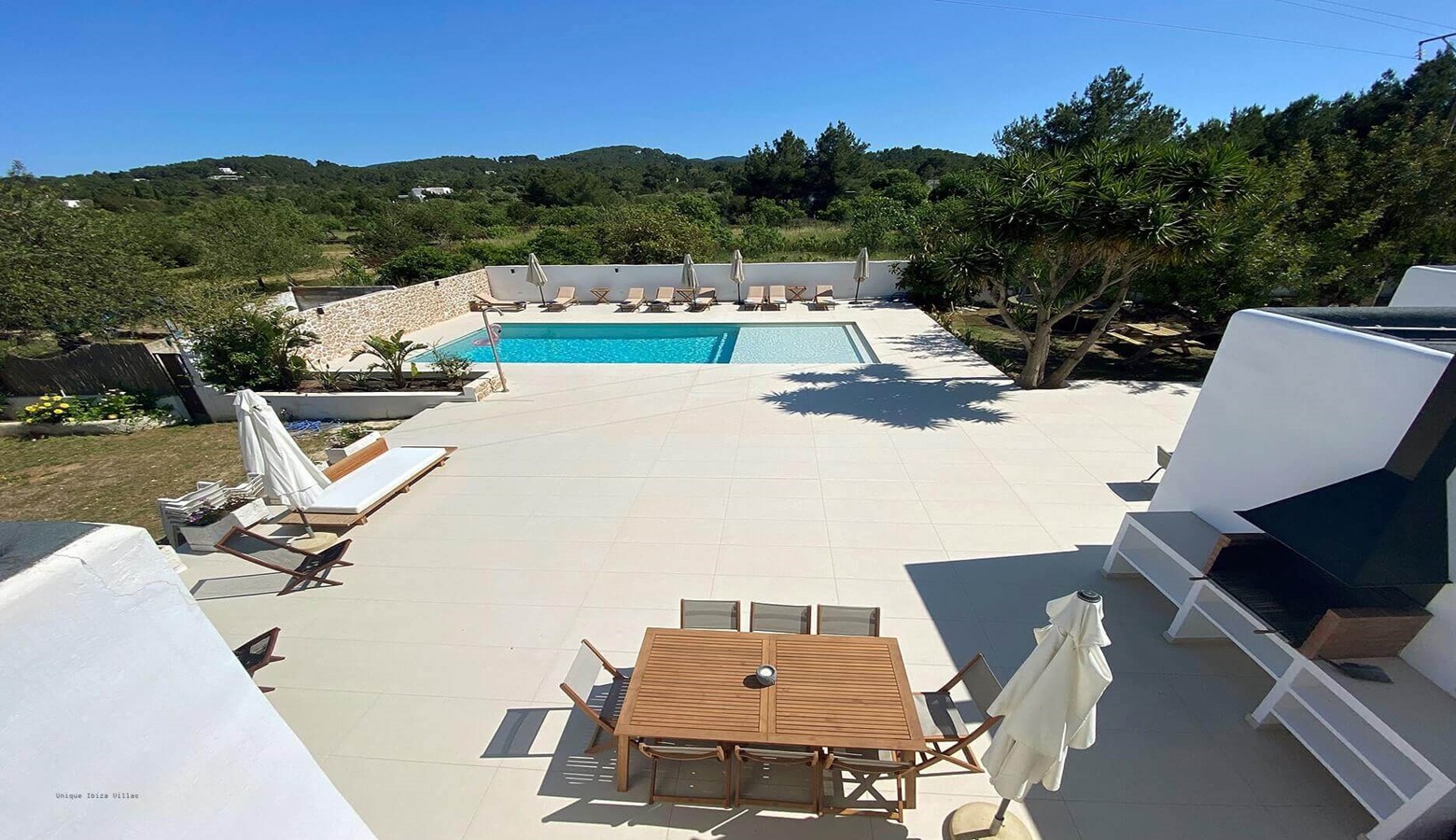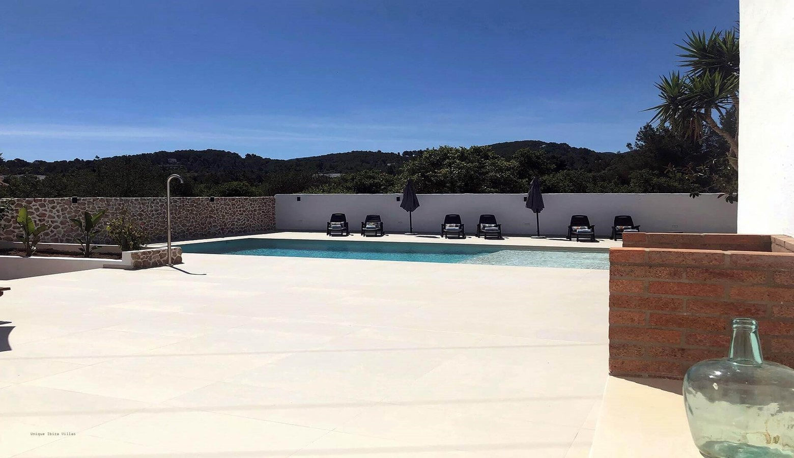 The refurbished outside area including the swimming pool is very appealing; inside the villa is quite simple but it's a great location for exploring San Antonio