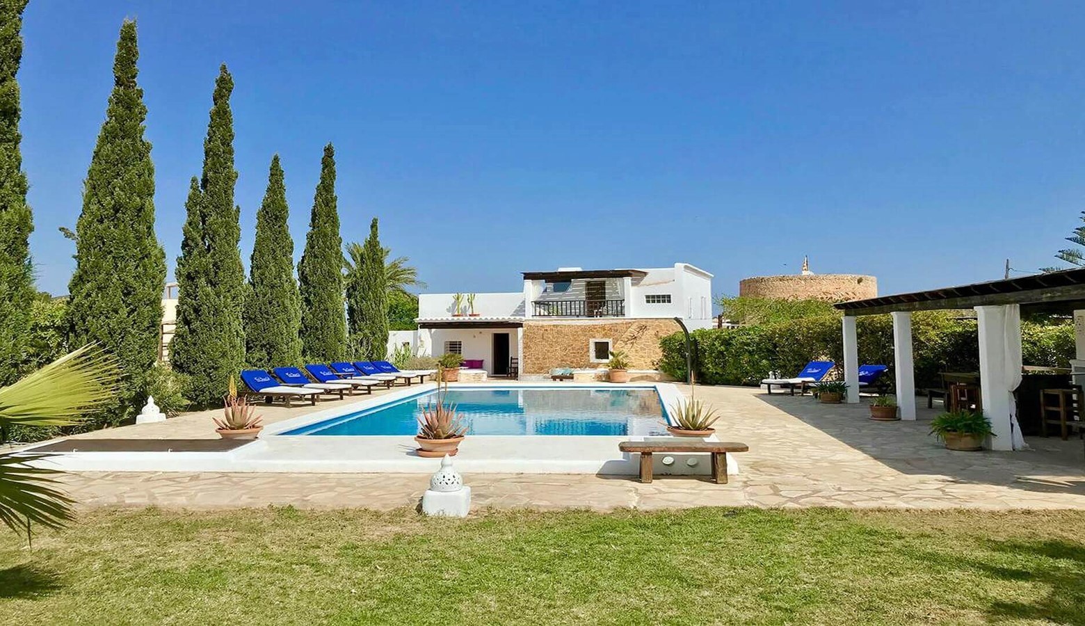 For nearby small and traditional villages visit San Agustin (Sant Agusti des Vedra) 3.5 kilometres away and Es Cubells just under 7 kilometres. Ibiza Town is 15 kilometres to the centre for all the shopping, dining, people watching, history you are looking for on holiday.