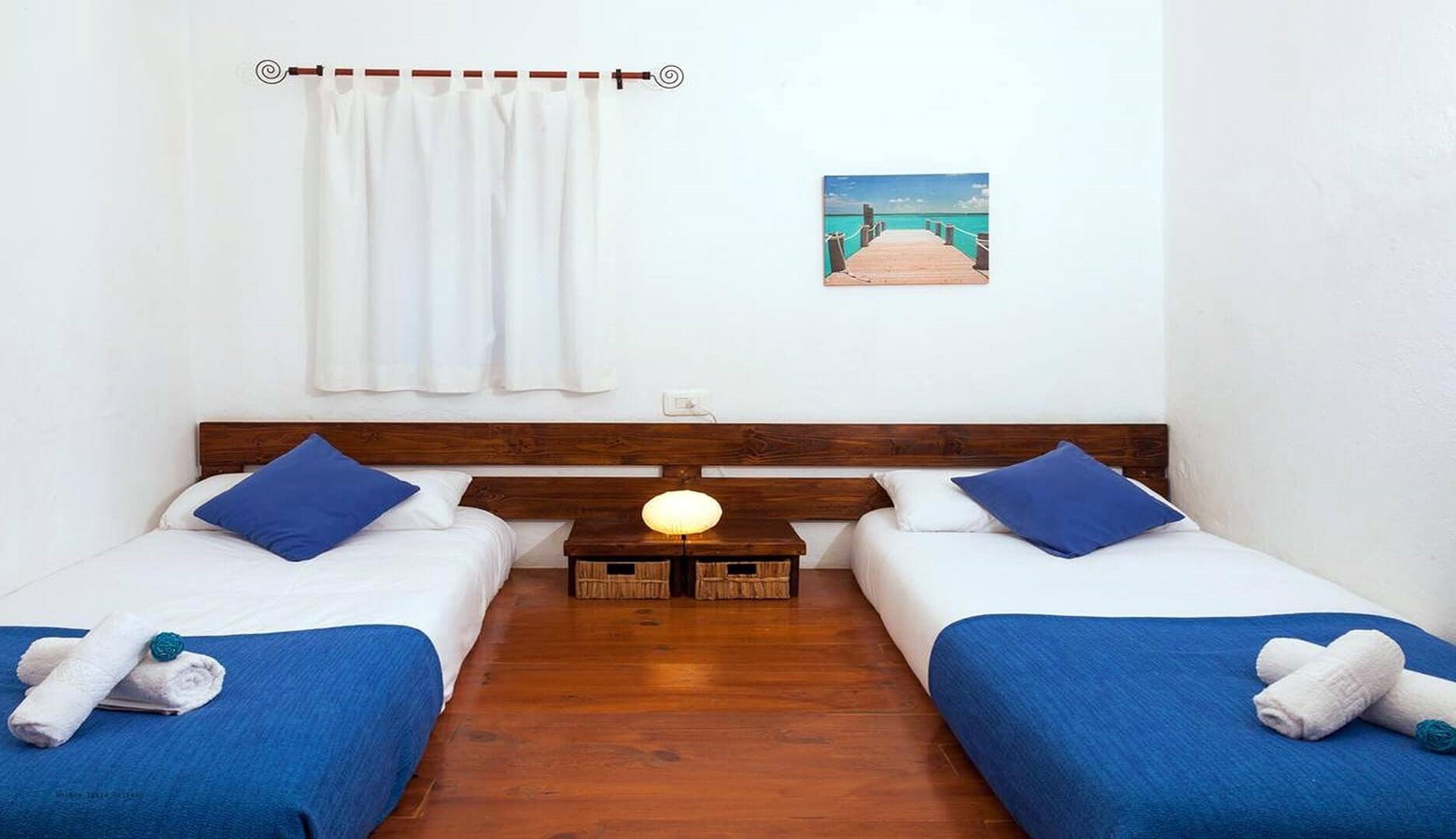 2 bedrooms with twin beds and fans