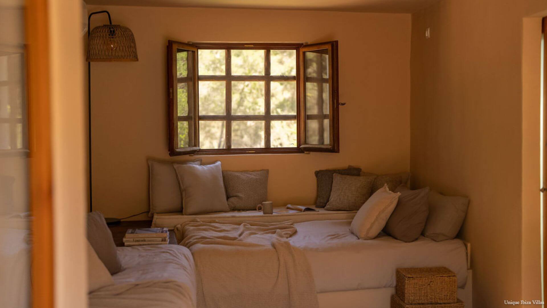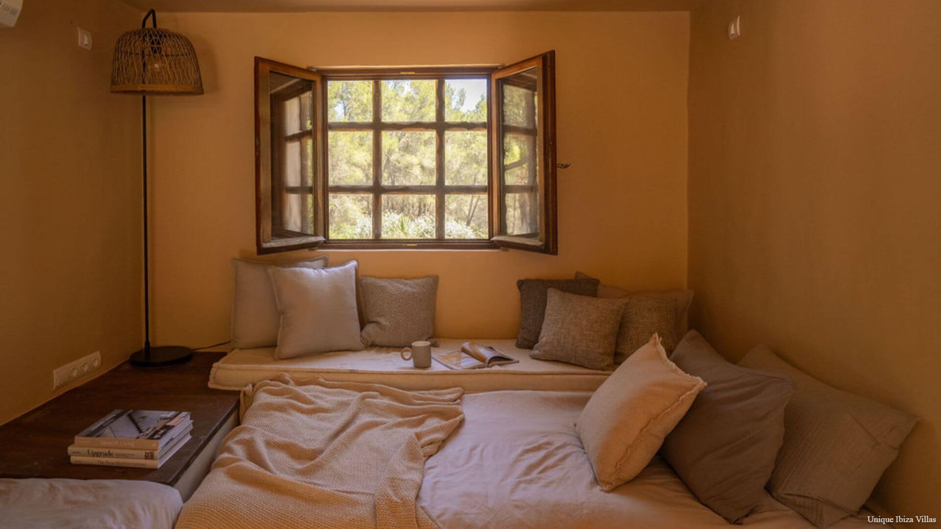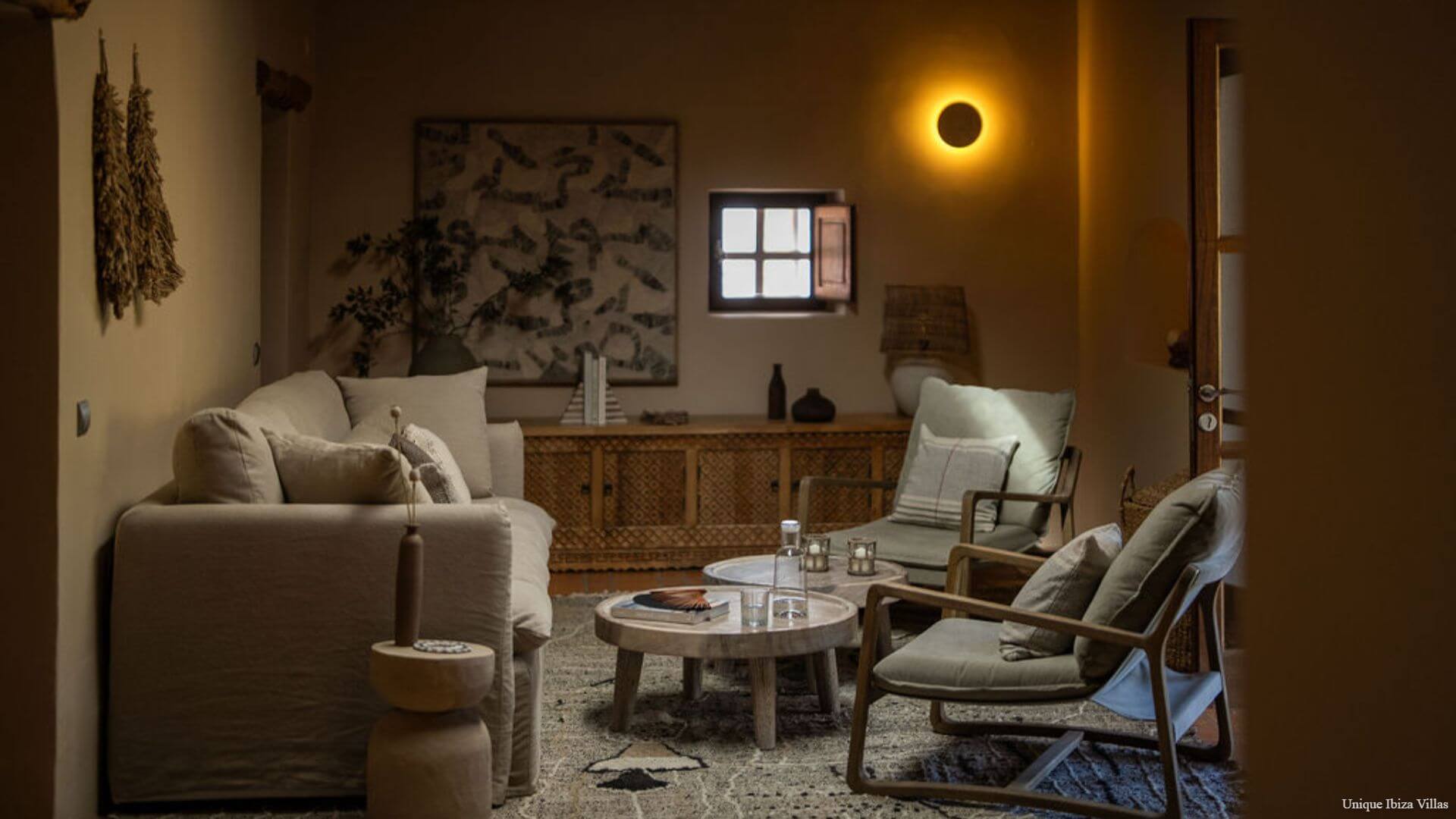 Villa Luna is a chic & cosy 4 bedroom villa surrounded by nature in one of the most beautiful corners of Ibiza, offering a peaceful setting for your Ibiza villa holiday; and yet only a 7 minute drive to the village of San Jose/Sant Josep de sa Talaia (the gateway to west coast beaches including Cala Tarida & Cala Bassa) and only a 12 minute drive to Cala Jondal for Tropicana Beach Club, Blue Marlin Ibiza, Yemanja and Yondal restaurants