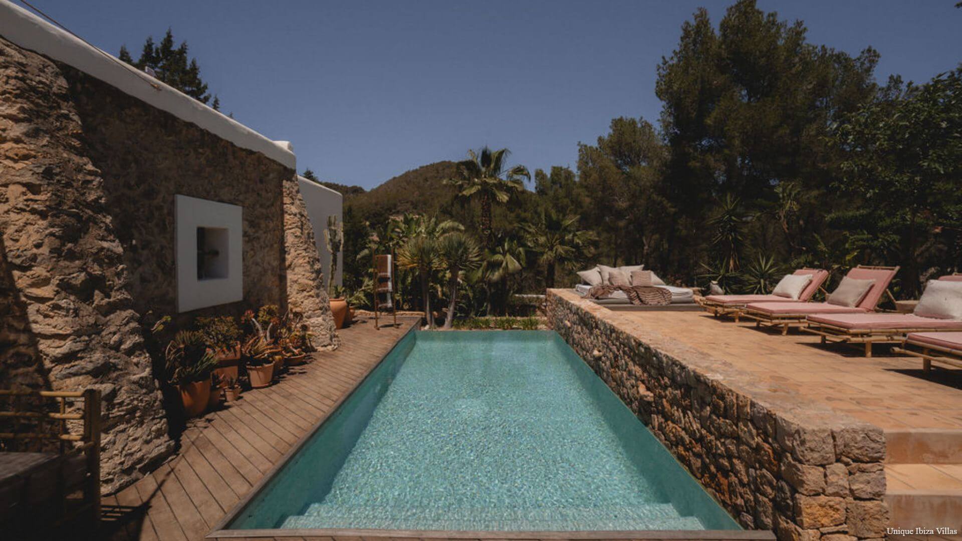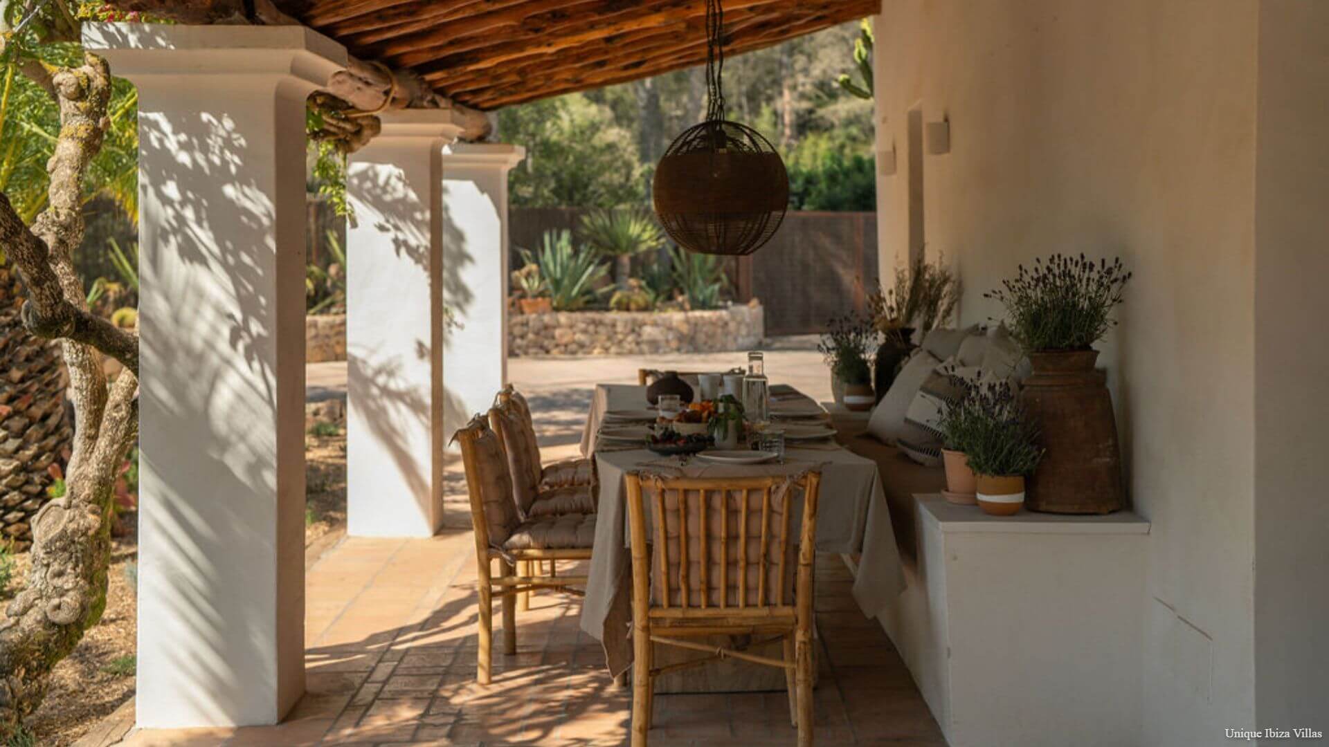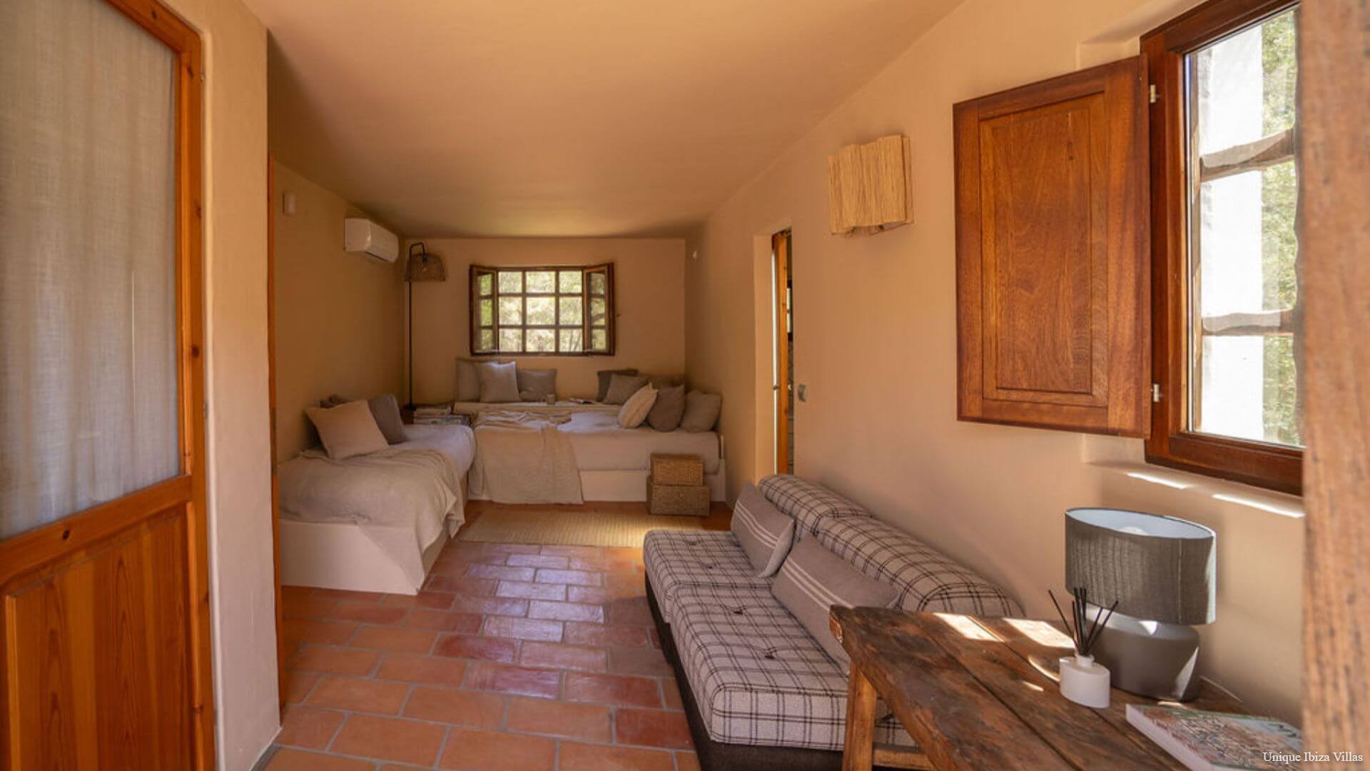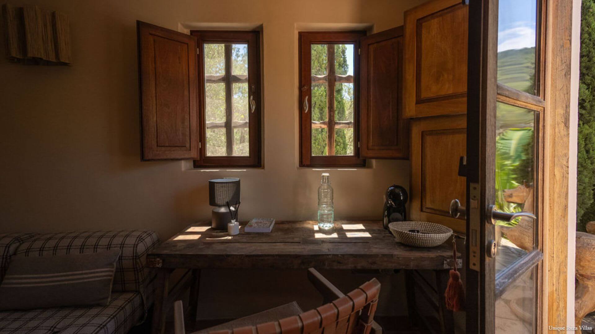 Villa Luna is a chic & cosy 4 bedroom villa surrounded by nature in one of the most beautiful corners of Ibiza, offering a peaceful setting for your Ibiza villa holiday; and yet only a 7 minute drive to the village of San Jose/Sant Josep de sa Talaia (the gateway to west coast beaches including Cala Tarida & Cala Bassa) and only a 12 minute drive to Cala Jondal for Tropicana Beach Club, Blue Marlin Ibiza, Yemanja and Yondal restaurants