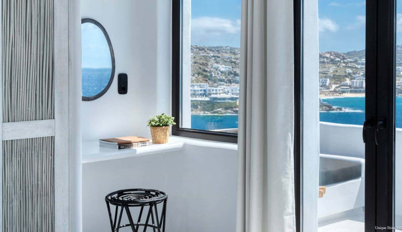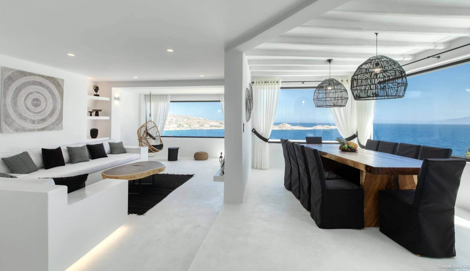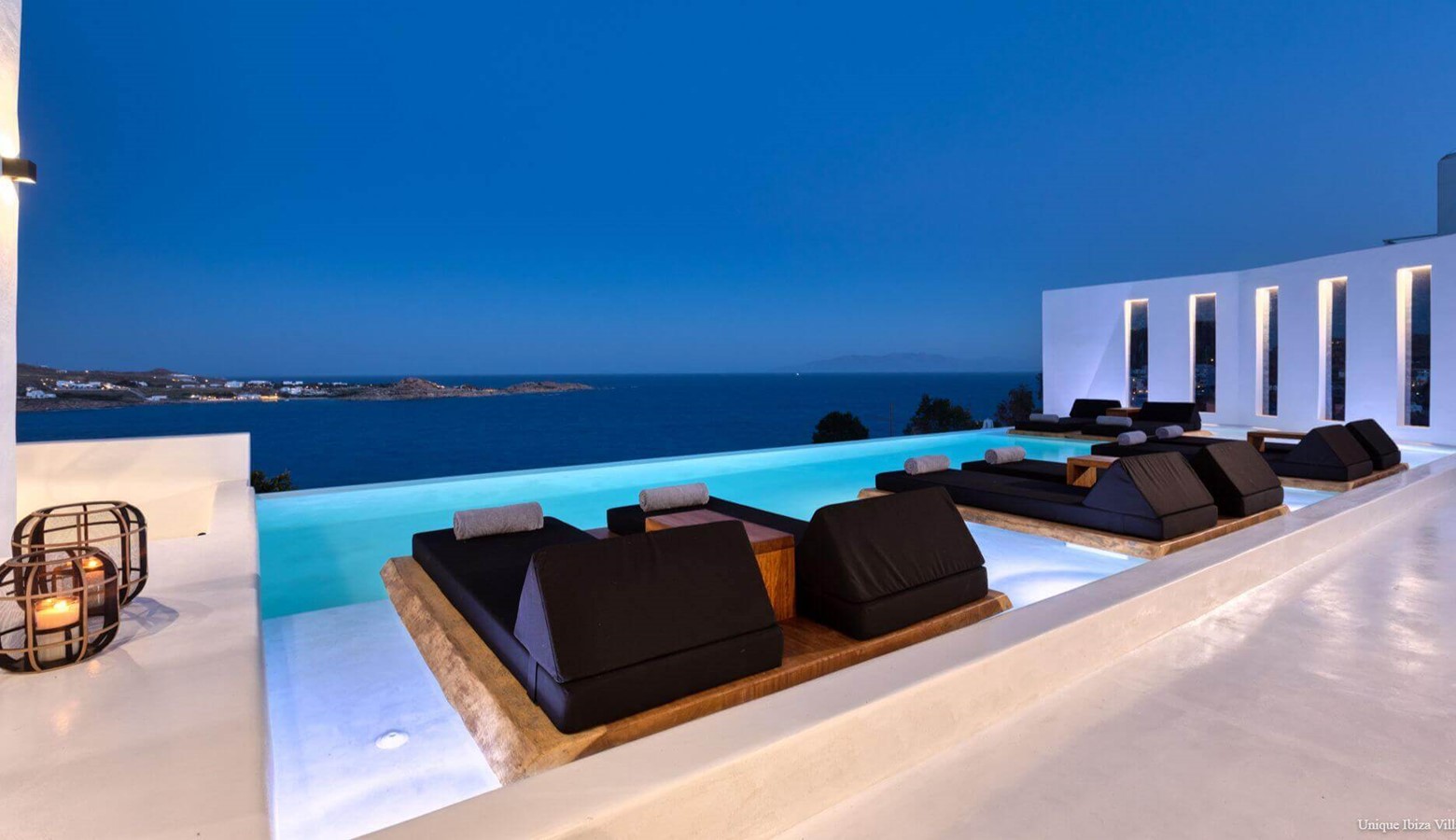 Villa Black Diamond I is 5 bedroom (sleeps 10) high end luxury modern villa with sea views (and views towards the neighbouring islands of Naxos & Paros) in the area of Agios Lazarus and overlooking (a 3 kilometres drive) to Psarou beach (home to Nammos Restaurant).