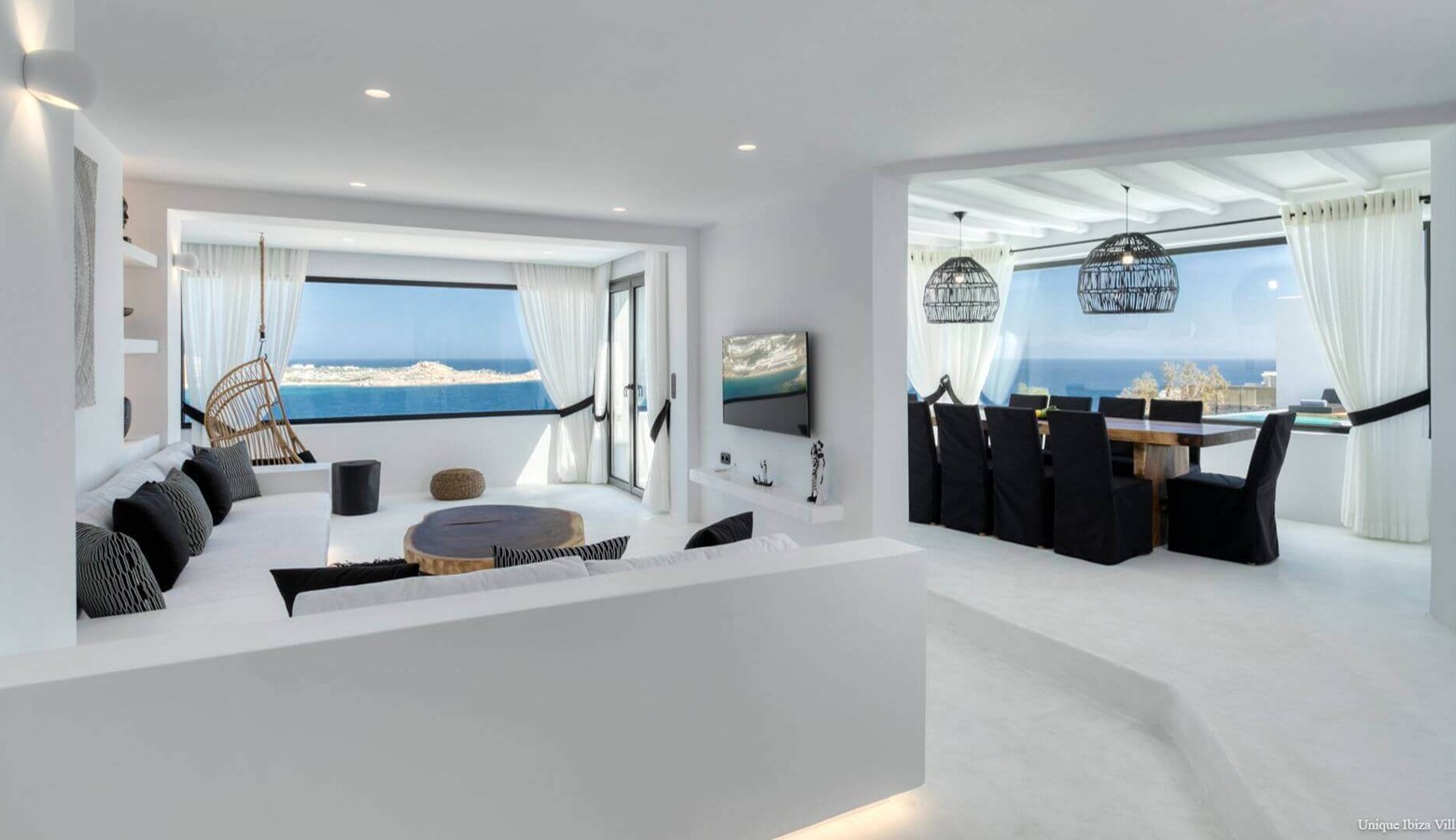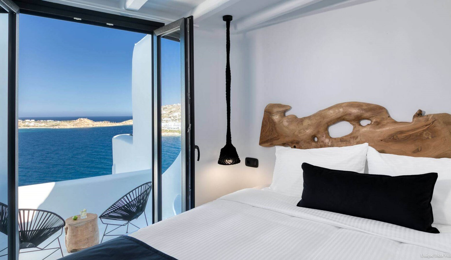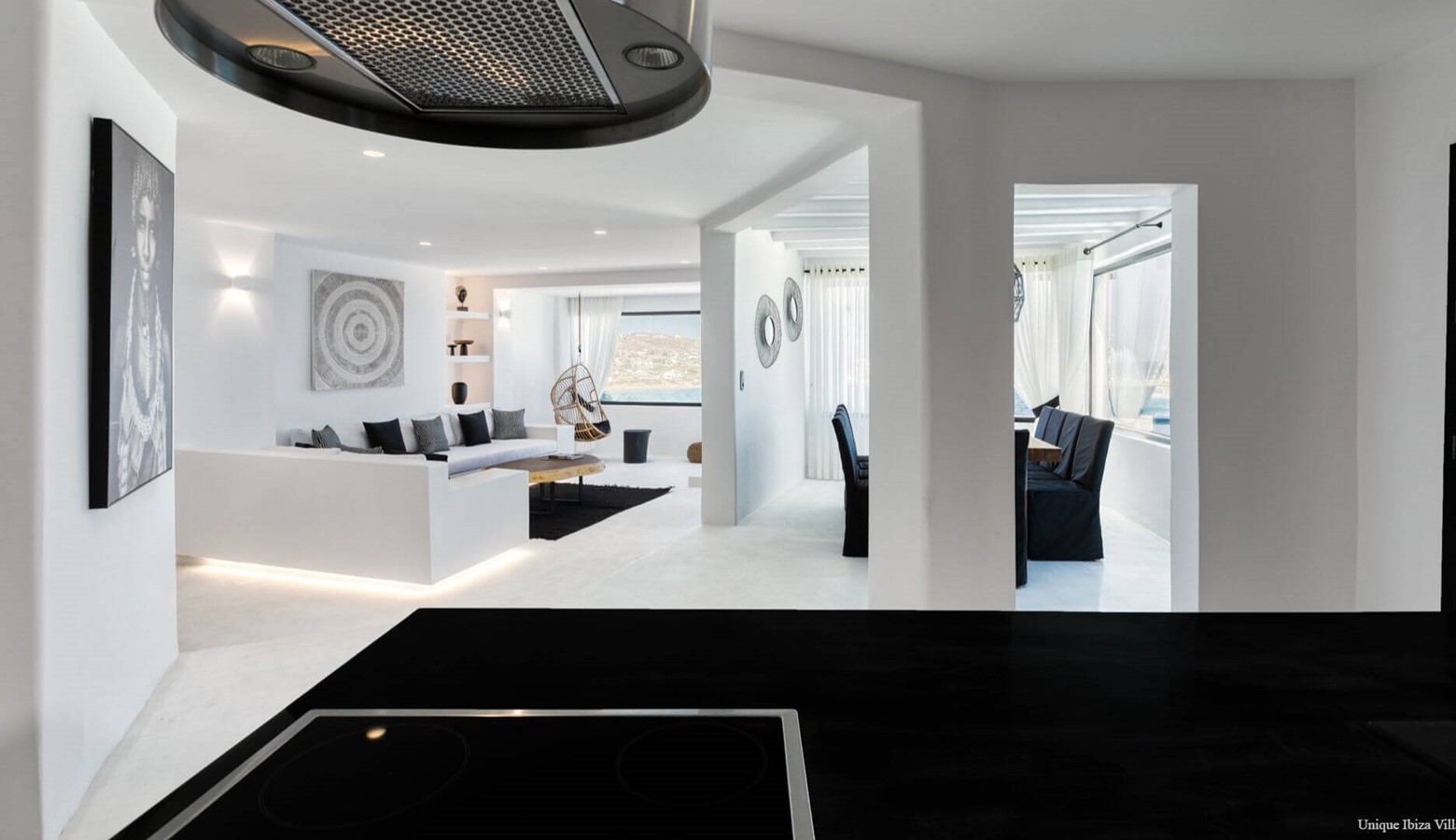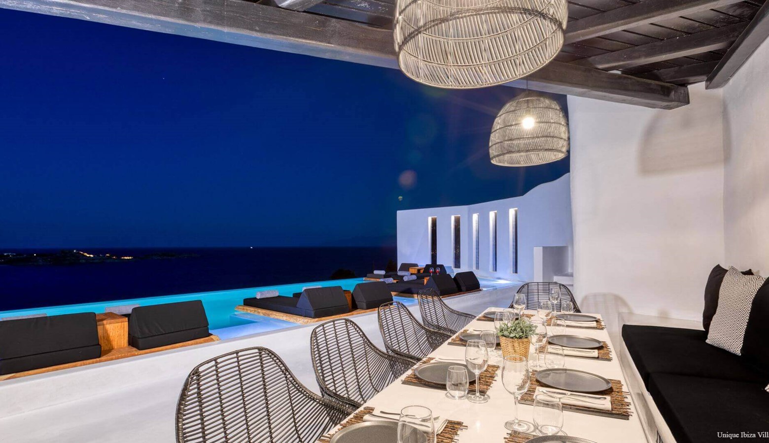 Villa Black Diamond I is 5 bedroom (sleeps 10) high end luxury modern villa with sea views (and views towards the neighbouring islands of Naxos & Paros) in the area of Agios Lazarus and overlooking (a 3 kilometres drive) to Psarou beach (home to Nammos Restaurant).